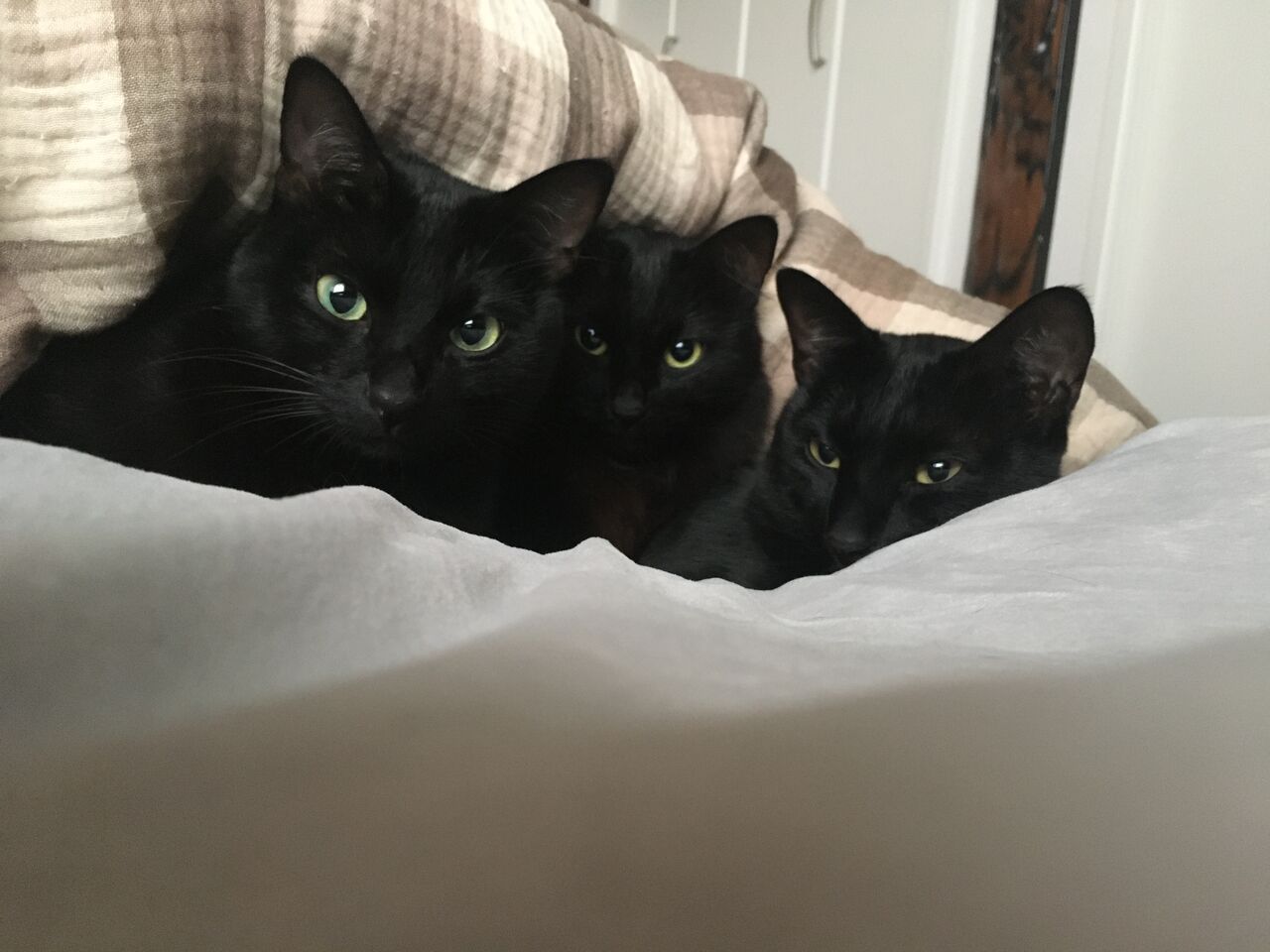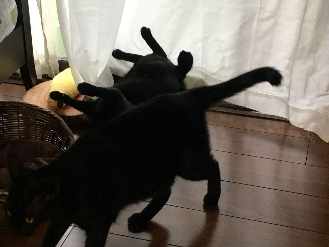こつこつ冬支度 2021年10月29日 14:23 寒いと思えば、次の日は暖かくなったり。でも、ついに昨日コタツを出しました。絨毯も冬使用に変更です。布団も毛布も洗ってスッキリ!長居するトイレ(主に夫が)にもミニ電気ストーブが登場。コツコツ冬支度をしております。御猫様はと言うと・・・。気温によって一日の過ごし方が変わります。寒い日は、布団に集合。お布団をバリバリ掘ろうとするから、目が離せません。穴を開けるのだけは勘弁してください。左から、まーすけ・わこちゃん・くうちゃん。可愛い~。ちなみに、暖かい日は朝から大運動会。どっすーん!ケリケリケリ!やりたい放題です。ぽちっと応援よろしくお願いしますm(_ _)mペット・動物との暮らしランキング 「日常」カテゴリの最新記事 タグ :#黒猫#冬支度 < 前の記事次の記事 >