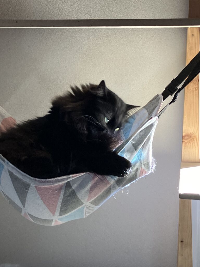 暑くなってきたので、ニャンモックの出番です。
