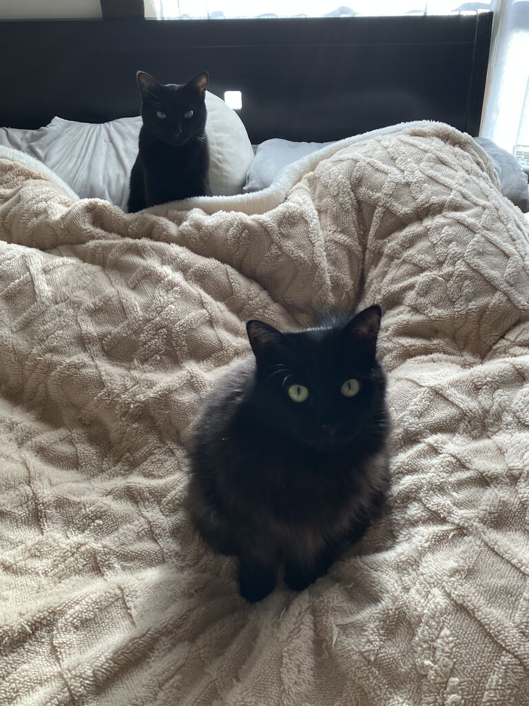 御猫様達は昼間も布団の上で日向ぼっこをして、かなりお気に召したご様子。