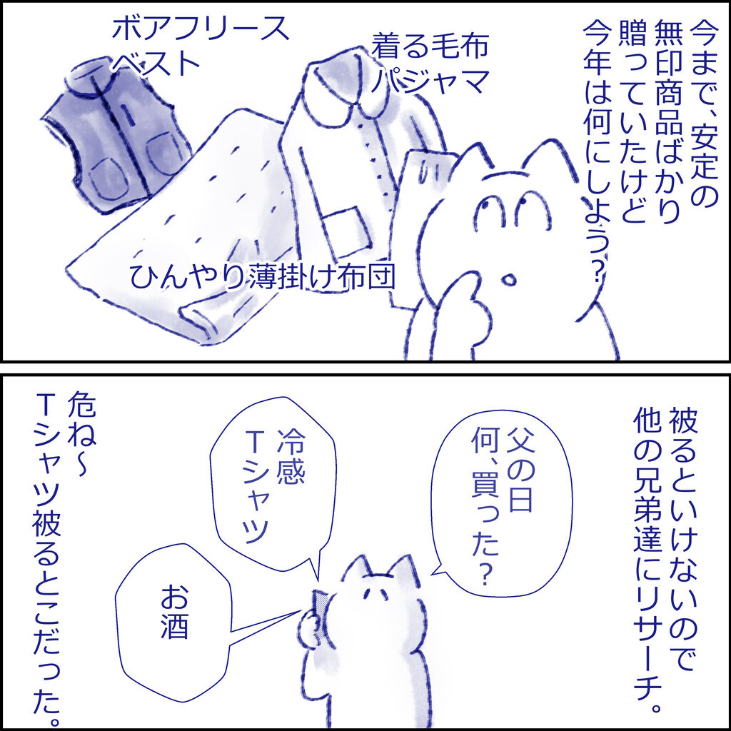兄弟に連絡を取ると、『冷感Tシャツ』『お酒』との返答が。